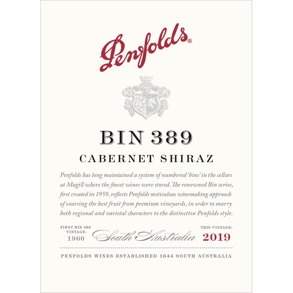 Penfolds Bin 389 Cabernet Shiraz, Sul da Austrália 2019 - Uma Sinergia de Sabores Incomparável!